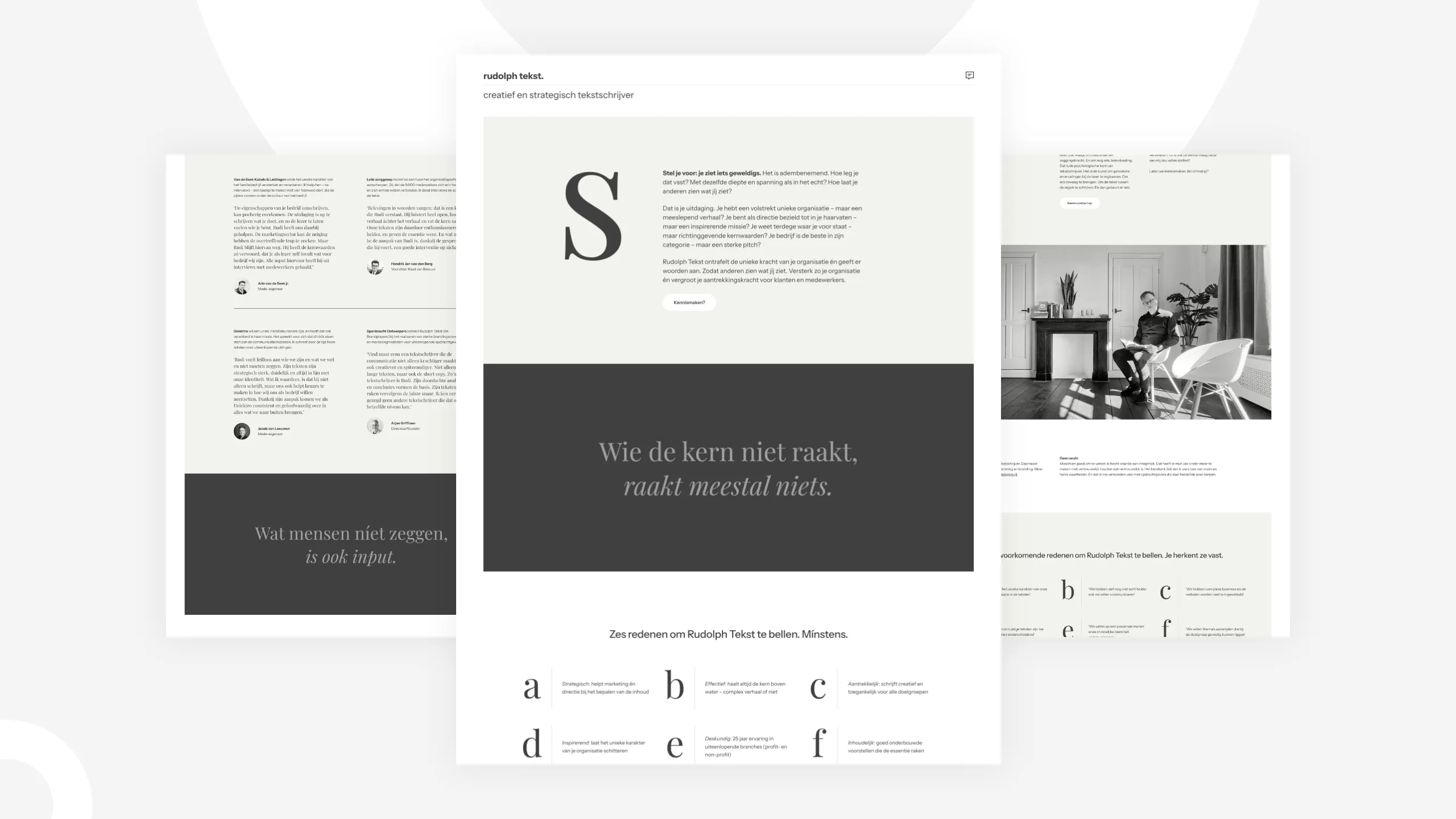 Rudolph Tekst is Rudi van Dijk. Ca. 25 jaar ervaring als tekstschrijver. Daarnaast specialist (MSc) in positionering en branding.